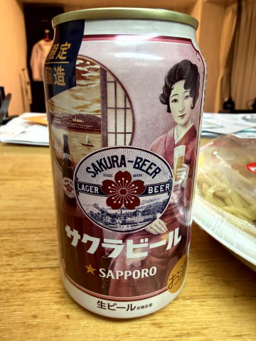 焼きそばの麺が極太で、あんかけには合います。サクラビールは、限定醸造です。