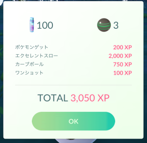2匹目以後も、ポケモンをゲットするたびに 3,050XPづつもらえました。10匹ゲットで 3万XPですよ。
