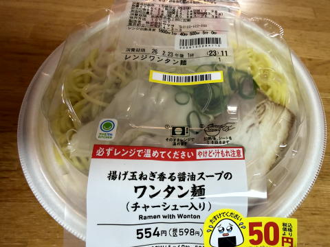 夜は ファミマの 揚げタマネギ香る醤油スープのワンタン麵(チャーシュー入り)でした。