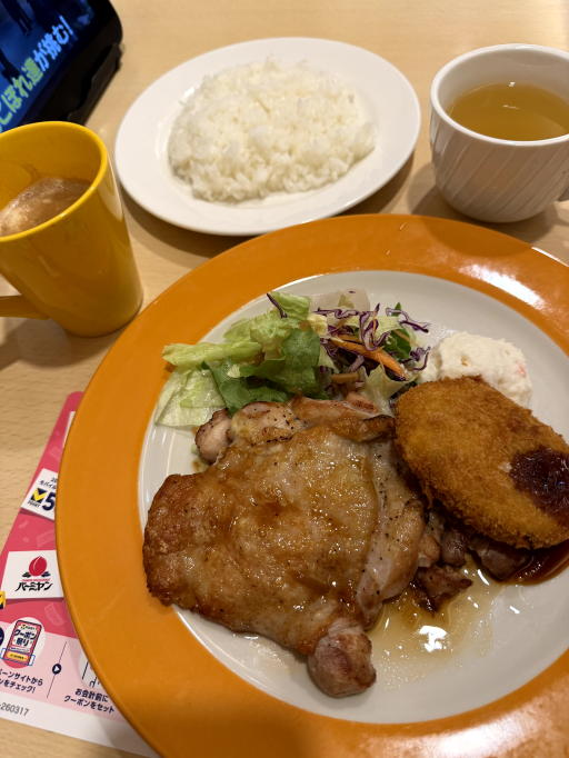 昼は、ジョナサンで 日替わりランチとドリンクバーでした。チキングリル てりやきソース&かぼちゃコロッケ ドリンクバー付で、908円の 5%引きでした。