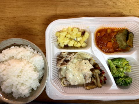 夜は、ニチレイフーズダイレクトの健康管理食(豚肉のきのこクリーム)でした。