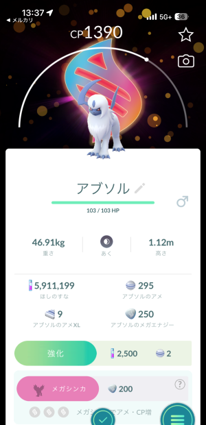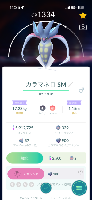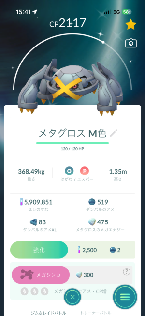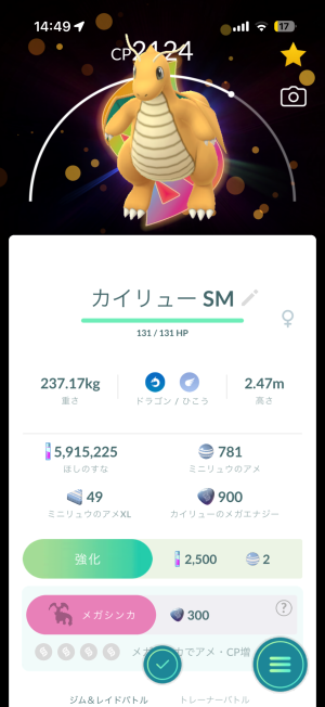 ※メガ進化、スーパーメガ進化ポケモンは、最初に進化するエナジーは確保しましたが、このブログのキャプチャでは、進化前です。