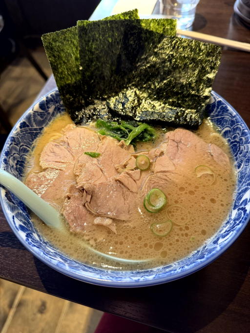 お昼は、家系ラーメン店で とんこつしょうゆチャーシュー麵でした。
