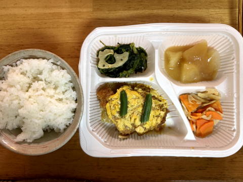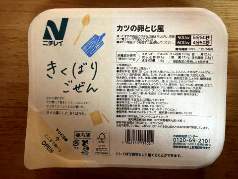 夜は、ニチレイフーズダイレクトの健康管理食(カツの卵とじ風)でした。