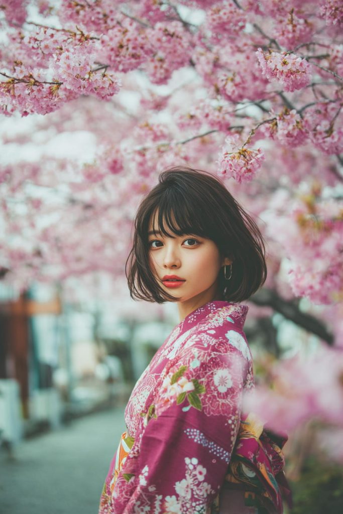 ブログネタがないので、Midjourney 7.0で生成した桜とおねえさんのAIイラストを貼っておしまいです。