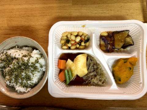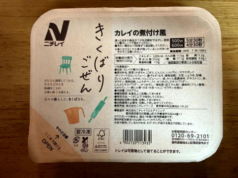 夜は、ニチレイフーズダイレクトの健康管理食(カレイの煮つけ風)、青のりごまふりかけでした。