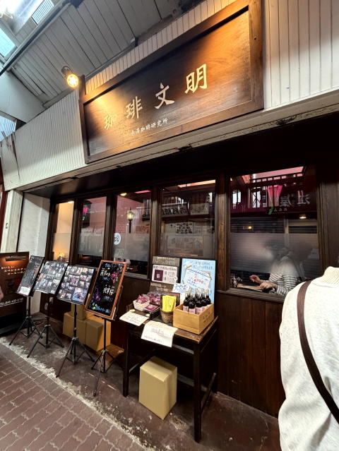 横浜の六角橋商店街にある昭和レトロな喫茶店「文明」で、アマチュア無線のローカル仲間 3人でオフ会をやりました。3人とも、初めましてでした。この店はマスターがワンオペでやっている店で、コーヒーはサイホンでいれます。無線では言えないプライベートな話題など、1時間半、盛り上がりました。