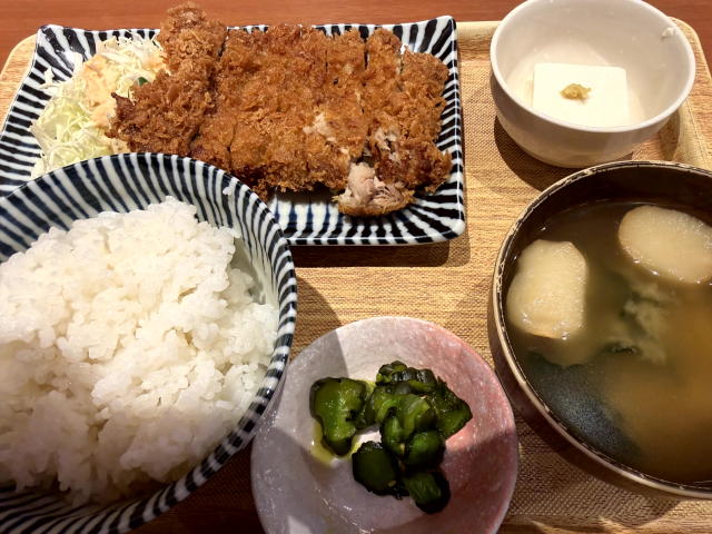 昼は、定食屋で ビッグではない ビッグチキンカツ定食でした。普通サイズのチキンカツなのに、ビッグチキンカツ定食です。