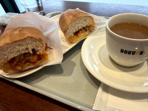 昼は、ドトールで ホットサンド 大豆のミート ~チーズ&トマト~ です。大豆肉を使っています。