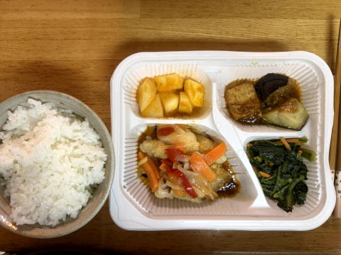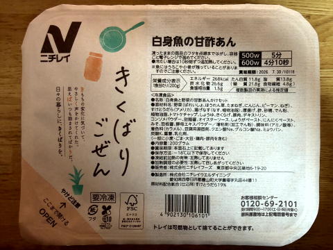 夜は、ニチレイフーズダイレクトの健康管理食(白身魚の甘酢あん)でした。