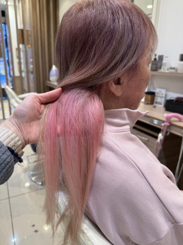 15:00 ~ 18:00 の 3時間かかって、髪を、さくら色にカラーリング(3色使っています)しました。
