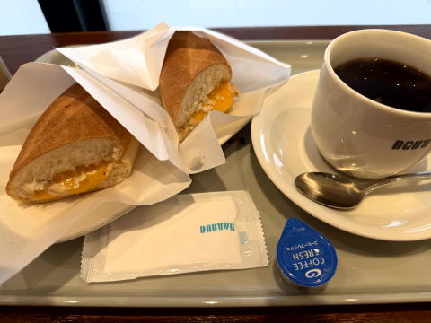 昼は、ドトールでツナチェダーチーズサンド、ブレンド(M)でした。