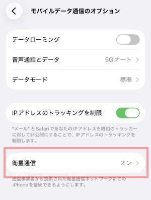 すでに、わたしの iPhone 17 Proの iOS 26.4では、衛星通信の設定がオンになっています。ここがオンだと、圏外になったとき、アンテナ3本線マークが衛星マークに変わり、衛星とスマホ間で直接通信できるようになります。