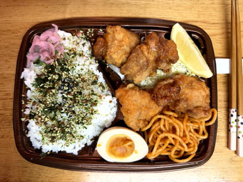 夜は、スーパーで安売りの 鶏唐揚げ弁当でした。