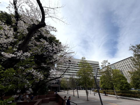 13:00に、大学病院を予約外で受診です。まだ桜が咲いています。