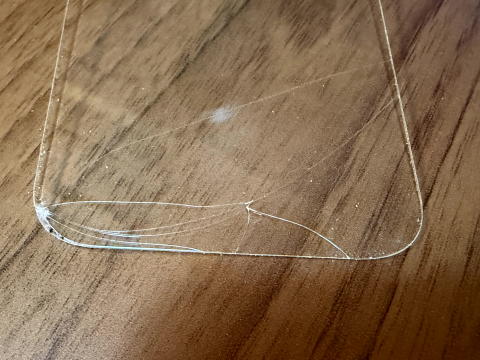 悪夢のことを考えながら歩いていたら、転んでしまい、 iPhone 17 Proの液晶保護用ガラスフィルムが割れてしまいました。