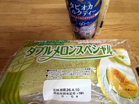 お昼は、ヤマザキのダブルメロンスペシャル、タピオカミルクティーでした。