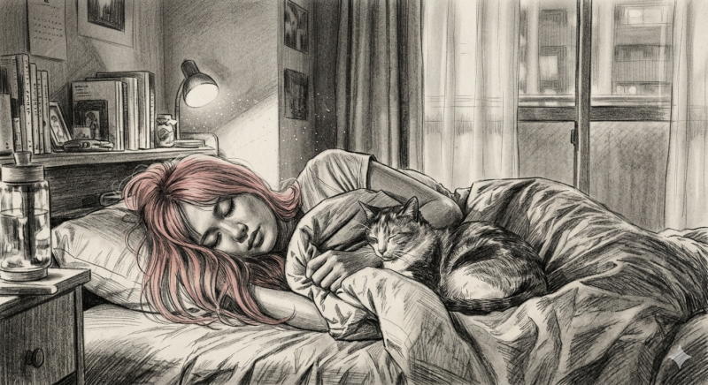自宅のベッドで寝たはずが、起きたら、生まれた家で寝ているのです。この家に居たのは 1975年くたいまでなので、50年前にタイムスリップしたようです。当時飼っていたネコがそばで丸くなって寝ていますが、このねこは、とっくに虹の橋を渡っています。