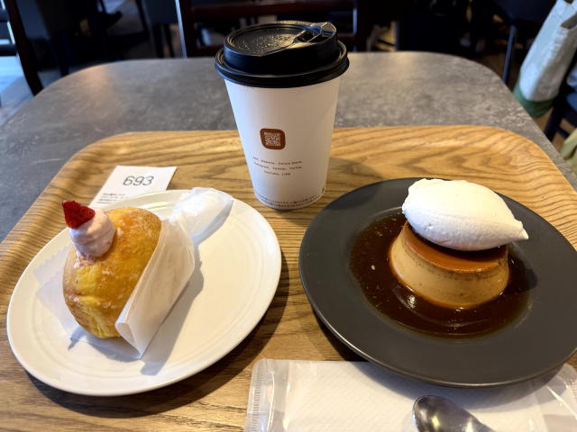 ほかに、イートインのみのスイーツで、人気 No.1 の かためのプリン + 本日のコーヒーセットをオーダーです。