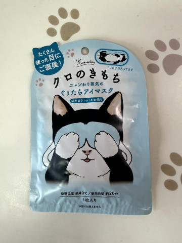 「クロのきもち」は、アロマタイプの温熱アイマスクで、陽だまりコットンの香りが特徴です。