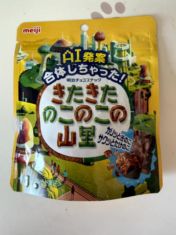 おやつは、AI発案 合体しちゃった! きたきたのこのこの山里 を食べてみました。