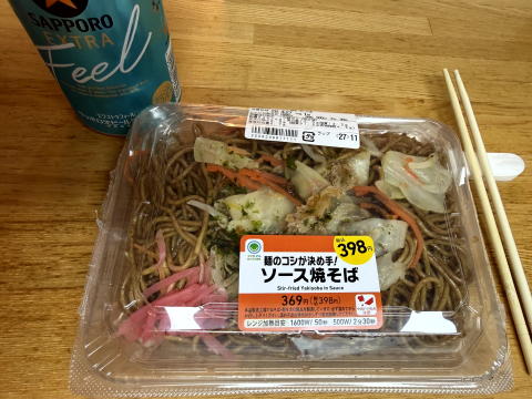 夜は、ファミマのソース焼きそばとビールでした。ビールは、ヨッシーパパさんのブログで拝見したものを買いました。