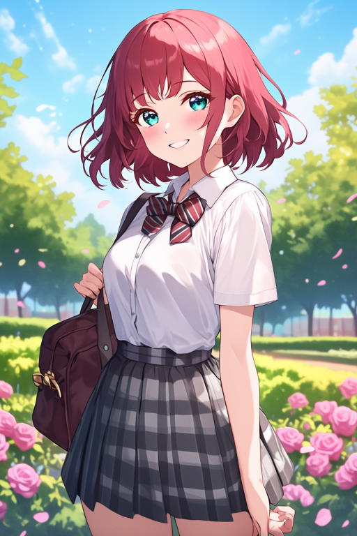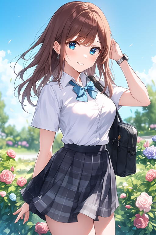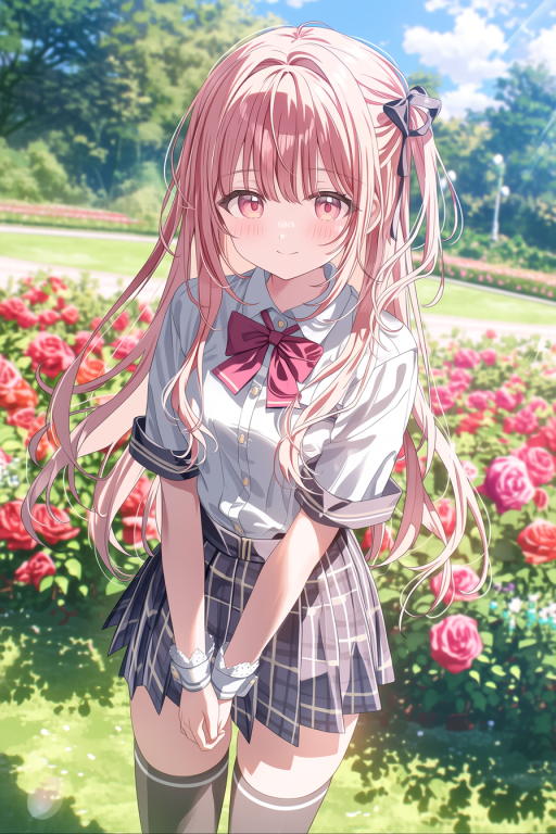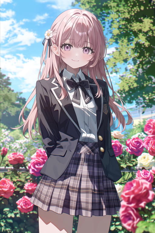Midjourney NIJI 7を使ってみようと思い、NIJI 6と同じプロンプトで比較してみました。二次元アニメ画モデルなので、バラ園をバックにJKを描いてみました。