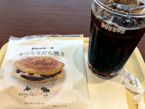 昼(14:30頃だが・・・)は、3時のおやつを兼ねて、ドトールで もっちりどら焼きでした。