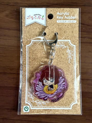 名探偵コナンの映画で、八丈島が舞台になった映画があり、コナンと灰原のアクリルキーホルダーが売ってたので、灰原のやつを買ってみました。たぶん、アニメイトとか行けば売ってるかもしれないけど、映画館の物販で売ってたものだと思うよ。